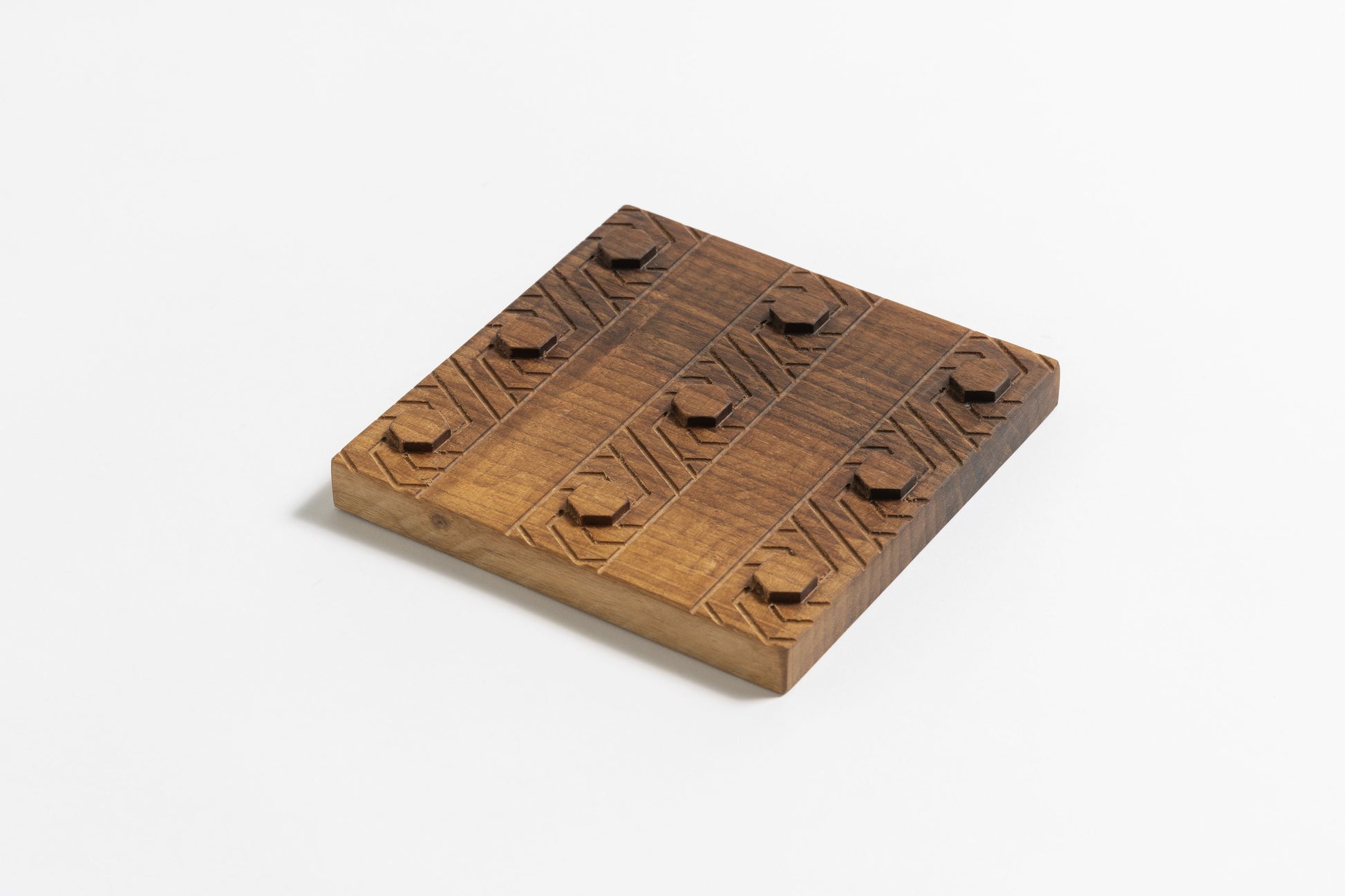 Rendi ogni pasto un'esperienza unica con i nostri sotto pentola fatti a mano, realizzati con legno autoctono in legno massello di noce nazionale e intagli che evocano la bellezza e la tranquillità della natura.